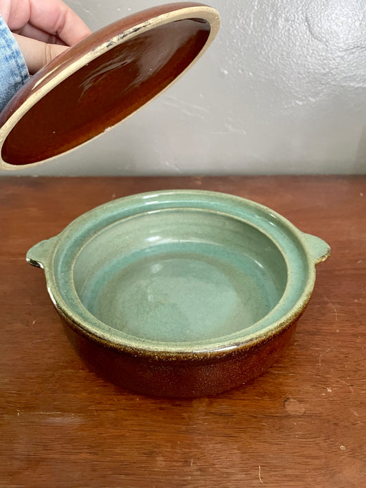 Vintage Brown & Mint Casserole Dish with Lid