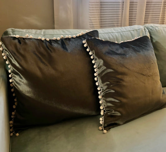 Olive Green Velvet Tassled Pillows