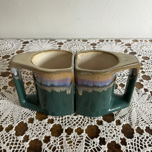 Vintage Drip Glazed Twin Mugs