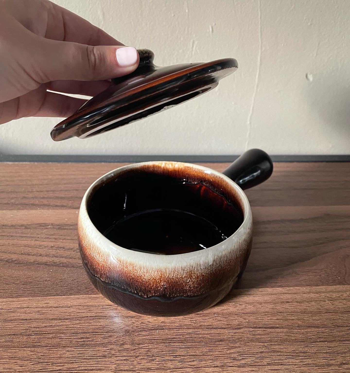Set of 4. These bowls are just begging to serve up some French onion soup! The colors & glaze are gorgeous and all are in perfect condition.