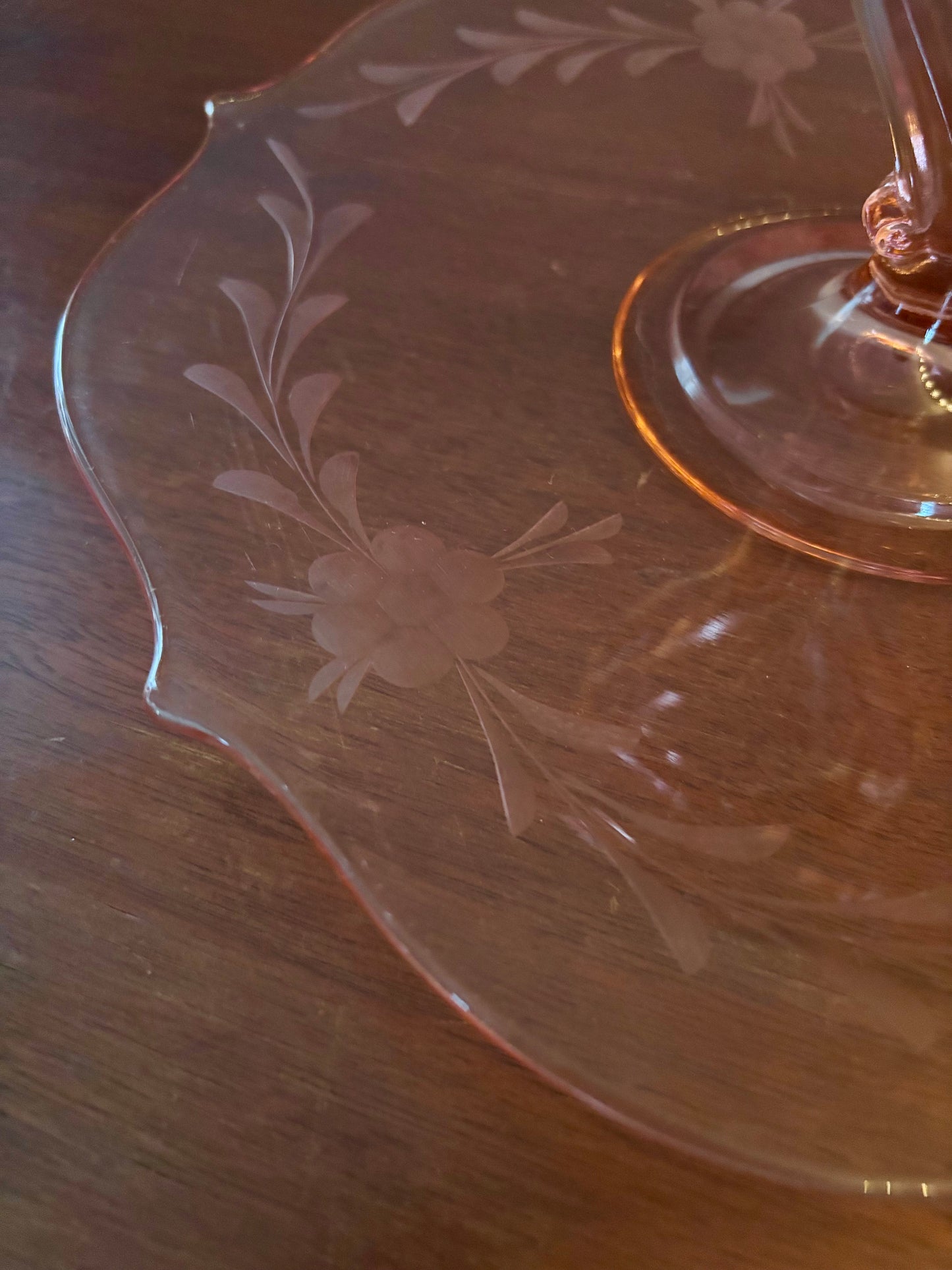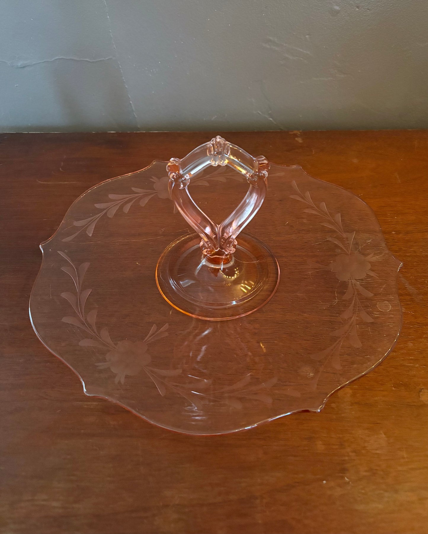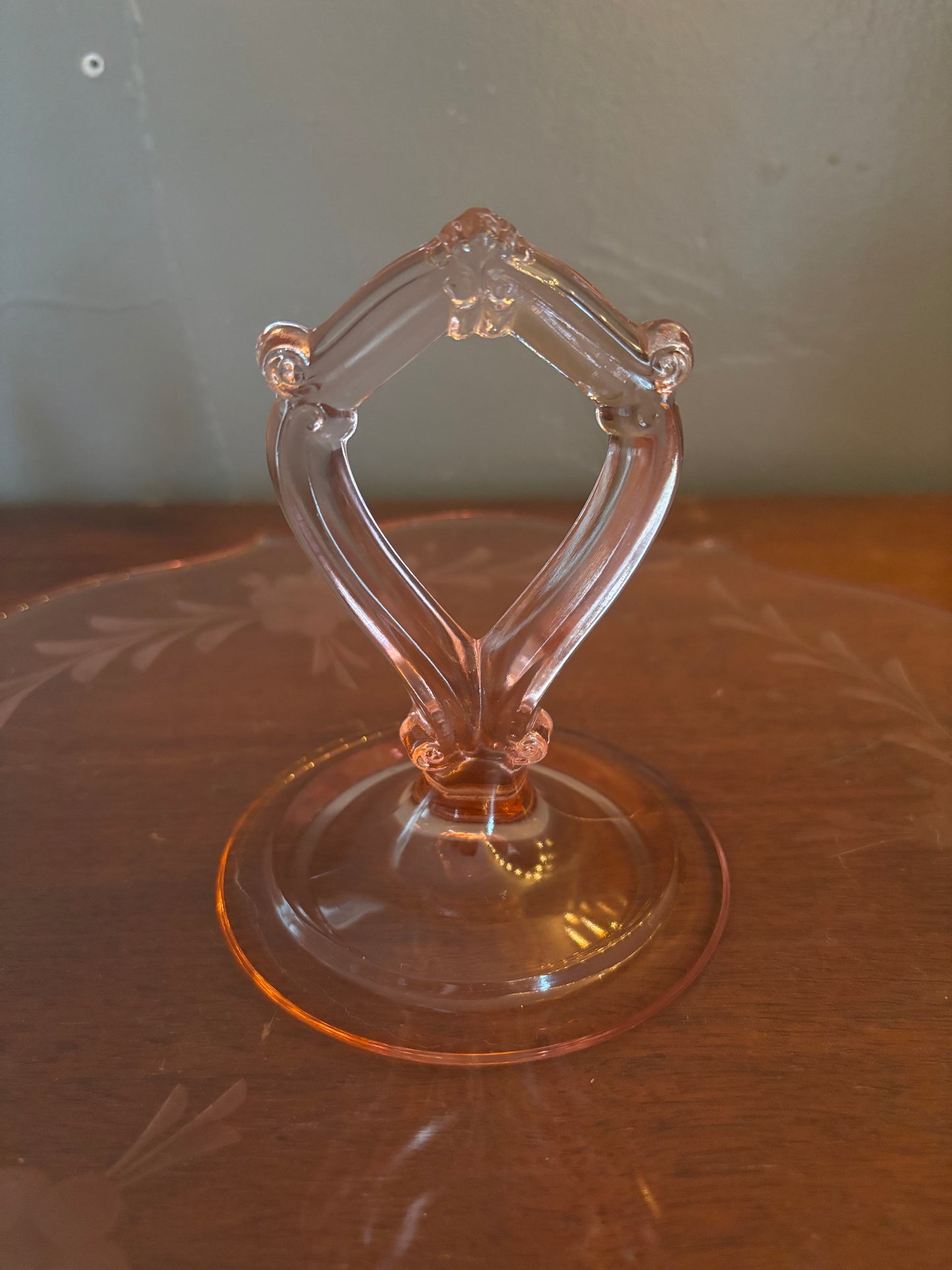 Just learned today that this is called a tidbit tray?? How cute is that! This beauty has a soft pink tone with florals etched on the underside. The perfect feminine display tray for cupcakes, jewelry, or any other tibdits! Measures 11" across and 5.5" tall.
