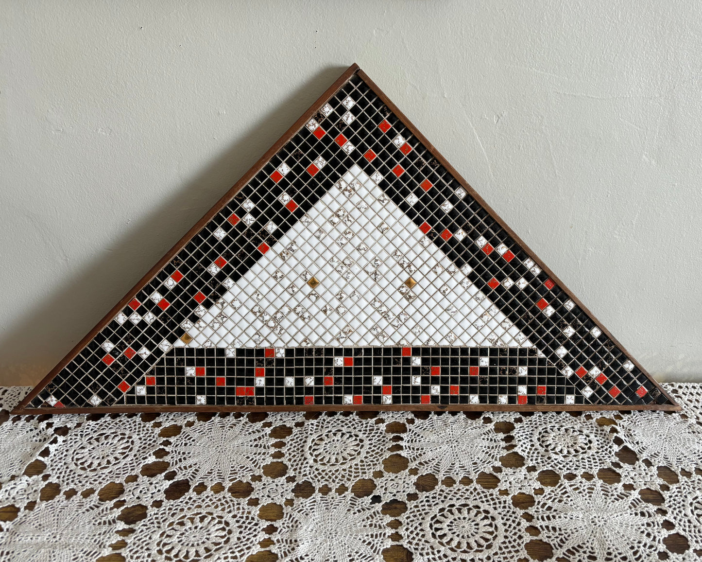 This piece is STUNNING. Would be perfect on a mantle or floating shelf! Has a teeny bit of wear to the bottom right corner as pictured. Measures approximately 20" wide and 16" tall.
