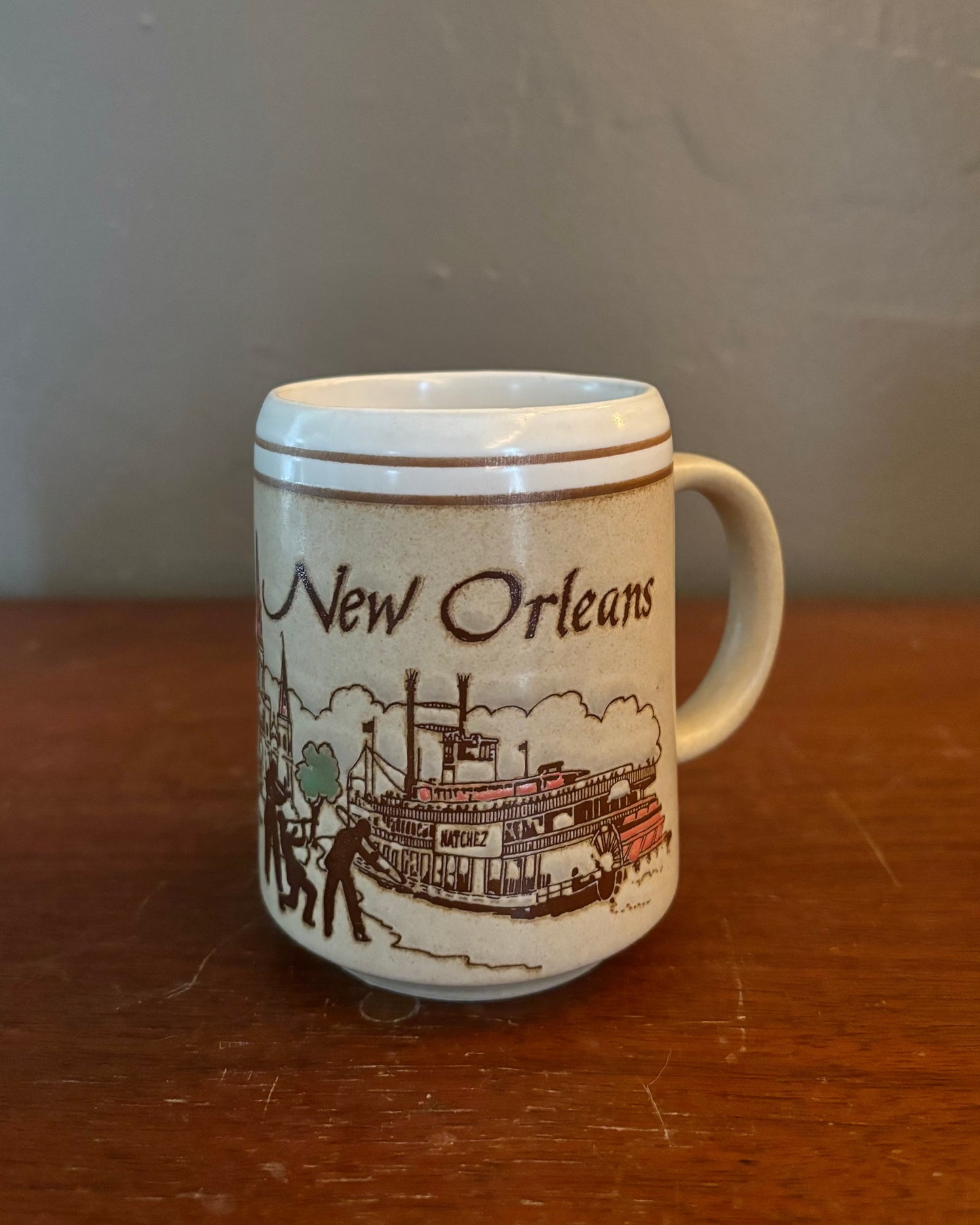 A 70s gem! Has detailing that wraps all the way around, and even has the original price sticker on the bottom.